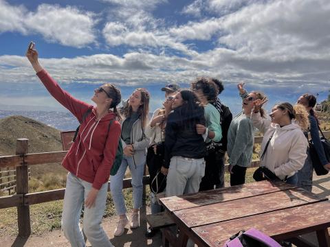 Students sit on steps in Sicily to draw